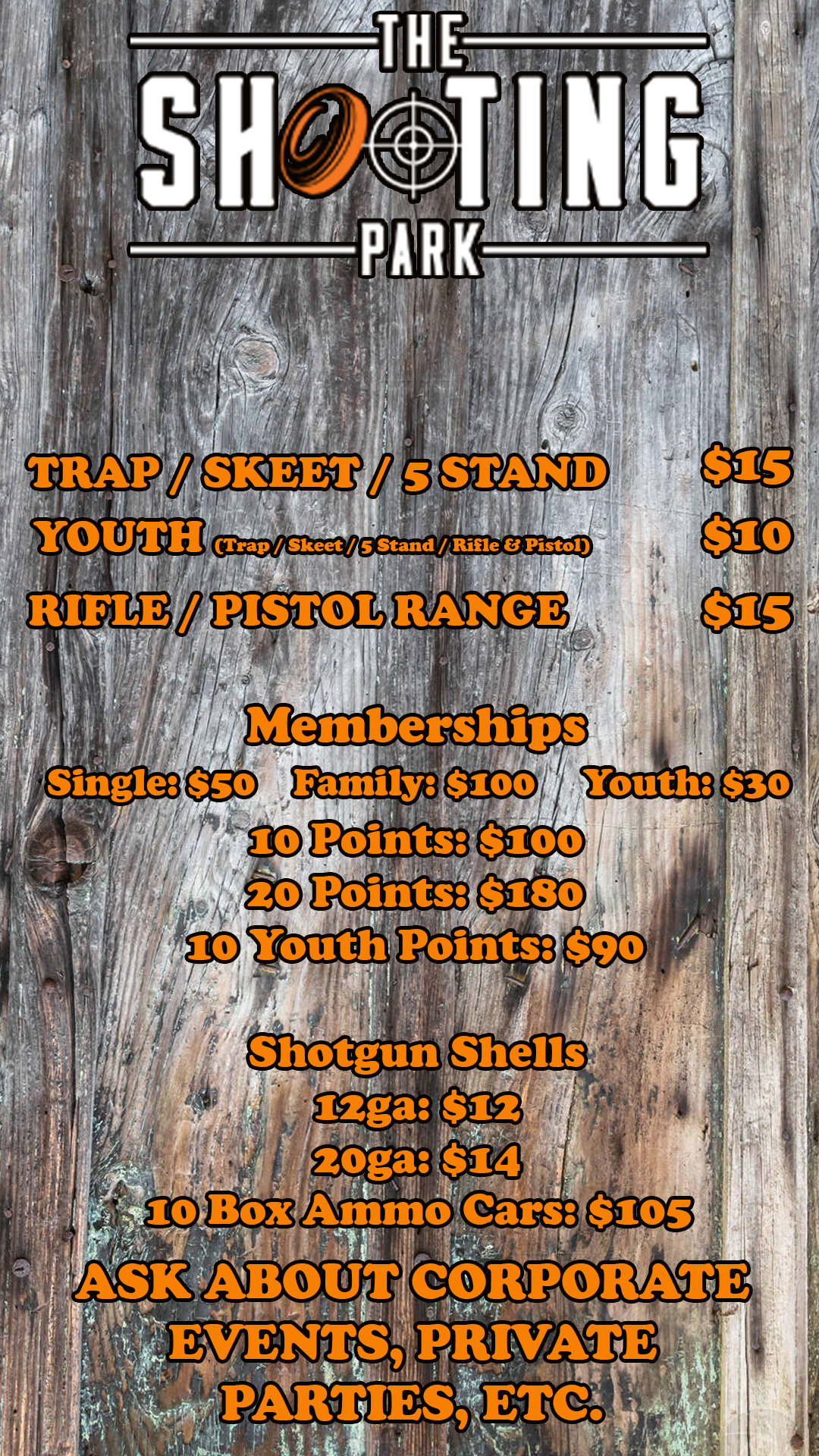 We will require payment from ALL people going to the handgun or rifle ranges, whether or not they are shooting. Everyone going to the ranges will be given a wristband so The Shooting Park staff can easily identify the shooters have paid their fees.